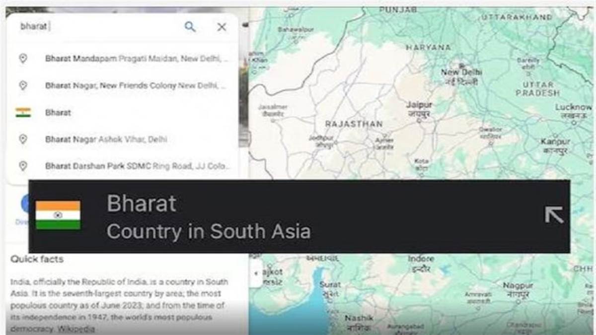 ਗੂਗਲ ਮੈਪਸ ਦੇ ਹਿੰਦੀ ਐਡੀਸ਼ਨ ‘ਚ ਗੂਗਲ “ਭਾਰਤ” ਨੂੰ ਦਰਸਾਉਂਦਾ ਹੈ, ਦੂਜੇ ਪਾਸੇ, ਜੇਕਰ ਤੁਸੀਂ ਅੰਗਰੇਜ਼ੀ ਭਾਸ਼ਾ ਦੀ ਵਰਤੋਂ ਕਰ ਰਹੇ ਹੋ ਤਾਂ ਖੋਜ ਨਤੀਜੇ “ਇੰਡੀਆ” ਲਈ ਦਿਖਾਏ ਜਾਂਦੇ ਹਨ। ਜਿੱਥੋਂ ਤਕ ਟੈਕਸਟ ਵਰਣਨ ਦਾ ਸਬੰਧ ਹੈ, ਇਹ ਹਿੰਦੀ ਤੇ ਅੰਗਰੇਜ਼ੀ ਦੋਵਾਂ ਭਾਸ਼ਾਵਾਂ ‘ਚ ਇੱਕੋ ਜਿਹਾ ਹੈ। ਅਜਿਹੇ ਸਮੇਂ ਜਦੋਂ ਕੇਂਦਰ ਸਰਕਾਰ ਹੌਲੀ-ਹੌਲੀ ਅਧਿਕਾਰਤ ਸੰਚਾਰ ‘ਚ “ਇੰਡੀਆ” ਦੀ ਬਜਾਏ “ਭਾਰਤ” ਦੀ ਵਰਤੋਂ ਕਰ ਰਹੀ ਹੈ, ਗੂਗਲ ਵੀ ਇਸ ਸਬੰਧ ‘ਚ ਆਪਣਾ ਹੋਮਵਰਕ ਕਰ ਰਿਹਾ ਹੈ।