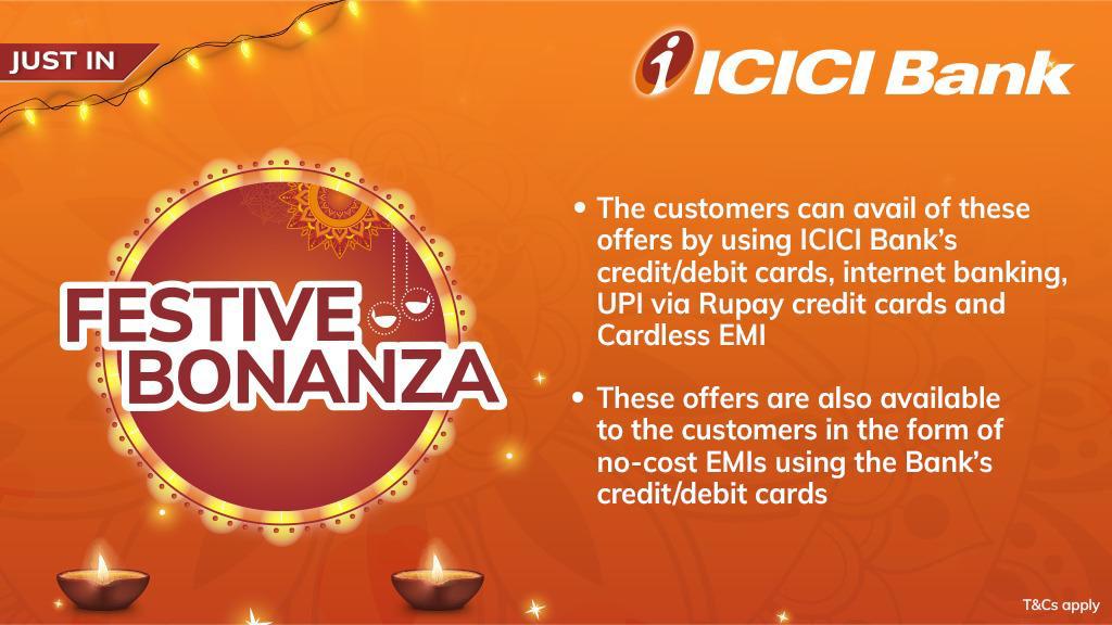 ICICI Bank ਨੇ ਗਾਹਕਾਂ ਲਈ ਇਲੈਕਟ੍ਰੋਨਿਕਸ, ਮੋਬਾਇਲ, ਫੈਸ਼ਨ, ਗਹਿਣੇ ਤੇ ਹੋਰ ਸ਼੍ਰੇਣੀਆਂ ’ਚ ਪ੍ਰਮੁੱਖ ਬ੍ਰਾਡਾਂ ਨਾਲ ਆਫ਼ਰ ਤਿਆਰ ਕੀਤੇ ਹਨ। ਇਸ ਫੈਸੀਵਟ Bonanza ਨਾਲ ਜੁੜੇ ਬ੍ਰਾਡਾਂ ’ਚ ਟਾਟਾ ਨਿਊ, ਵਲਪਲੱਸ, ਐੱਚਪੀ, ਕ੍ਰੋਮਾ, ਰਿਲਾਇੰਸ ਡਿਜੀਟਲ, ਐੱਲਜੀ ਤੇ ਸੋਨੀ ਵੀ ਸ਼ਾਮਲ ਹਨ।