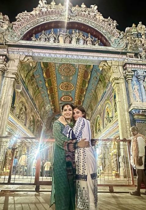 49 ਸਾਲਾ ਰਵੀਨਾ ਟੰਡਨ ਭੋਲੇਨਾਥ ਦੀ ਭਗਤੀ ‘ਚ ਡੁੱਬੀ ਹੋਈ ਹੈ। ਉਸਨੇ 12 ਜਯੋਤਿਰਲਿੰਗਾਂ ਦੇ ਦਰਸ਼ਨ ਕਰਨ ਦਾ ਪ੍ਰਣ ਲਿਆ ਹੈ। ਹਾਲ ਹੀ ਵਿੱਚ, ਉਸਨੇ ਆਪਣੀ ਬੇਟੀ ਰਾਸ਼ਾ ਥਡਾਨੀ ਦੇ ਨਾਲ ਰਾਮੇਸ਼ਵਰਮ ਮੰਦਰ ਦਾ ਦੌਰਾ ਕੀਤਾ ਅਤੇ ਸਮੁੰਦਰੀ ਕੰਢੇ ‘ਤੇ ਭੋਲੇਨਾਥ ਦੇ ਦਰਸ਼ਨ ਕੀਤੇ। ਅਦਾਕਾਰਾ ਨੇ ਆਪਣੇ ਇੰਸਟਾਗ੍ਰਾਮ ਅਕਾਊਂਟ ‘ਤੇ ਰਾਮੇਸ਼ਵਰਮ ਦੀਆਂ ਕਈ ਤਸਵੀਰਾਂ ਸ਼ੇਅਰ ਕੀਤੀਆਂ ਹਨ। ਇਕ ਫੋਟੋ ‘ਚ ਉਹ ਮੰਦਰ ਦੇ ਸਾਹਮਣੇ ਆਪਣੀ ਬੇਟੀ ਨਾਲ ਪੋਜ਼ ਦਿੰਦੇ ਹੋਏ ਦੇਖਿਆ ਜਾ ਸਕਦਾ ਹੈ।