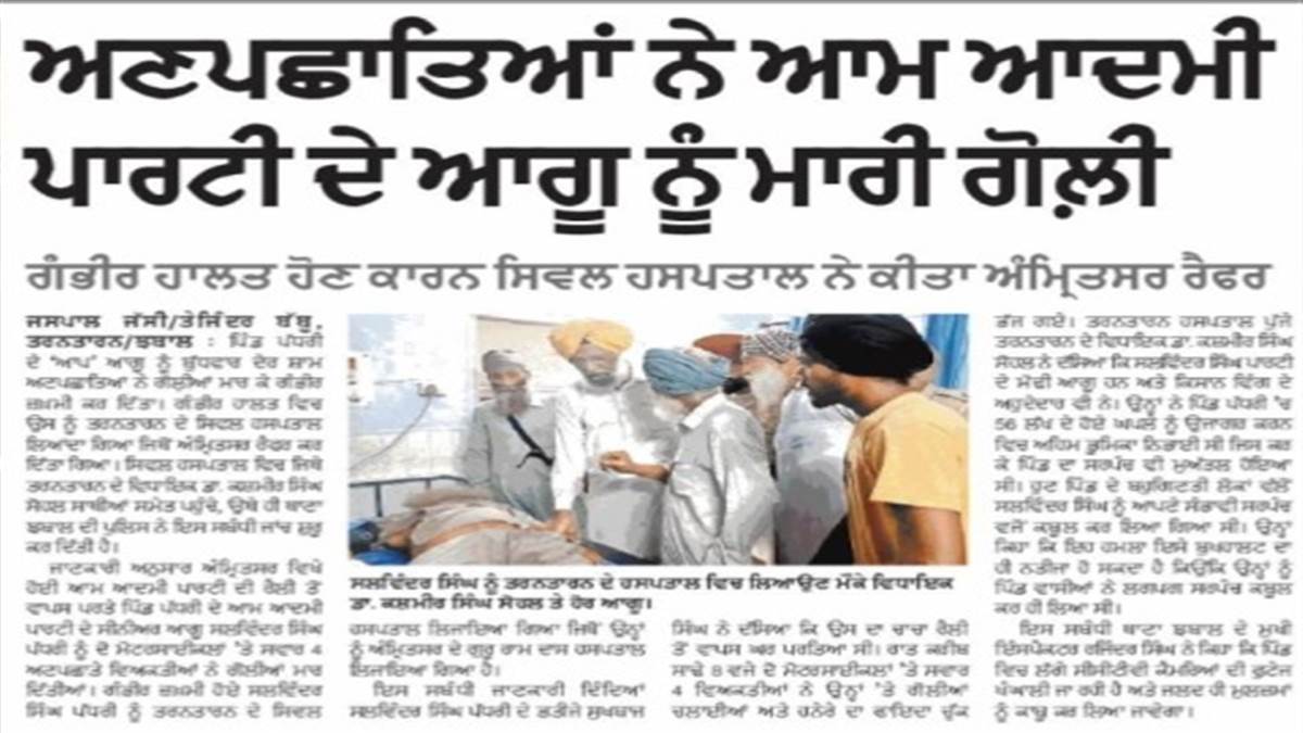 ਮਹਿੰਦਰ ਸਿੰਘ ਅਰਲੀਭੰਨ, ਡੇਰਾ ਬਾਬਾ ਨਾਨਕ ਪਿੰਡ ਸ਼ਾਹਪੁਰ ਜਾਜਨ ਵਿੱਚ ਫੈਲੇ ਡਾਇਰੀਆ ਕਾਰਨ ਪਿੰਡ ਦੇ 6 ਅੌਰਤਾਂ ਮਰਦਾਂ ਦੀਆਂ ਹੋਈਆਂ ਬੇਵਕਤੀ ਮੌਤ ਉਪਰੰਤ ਆਮ ਆਦਮੀ