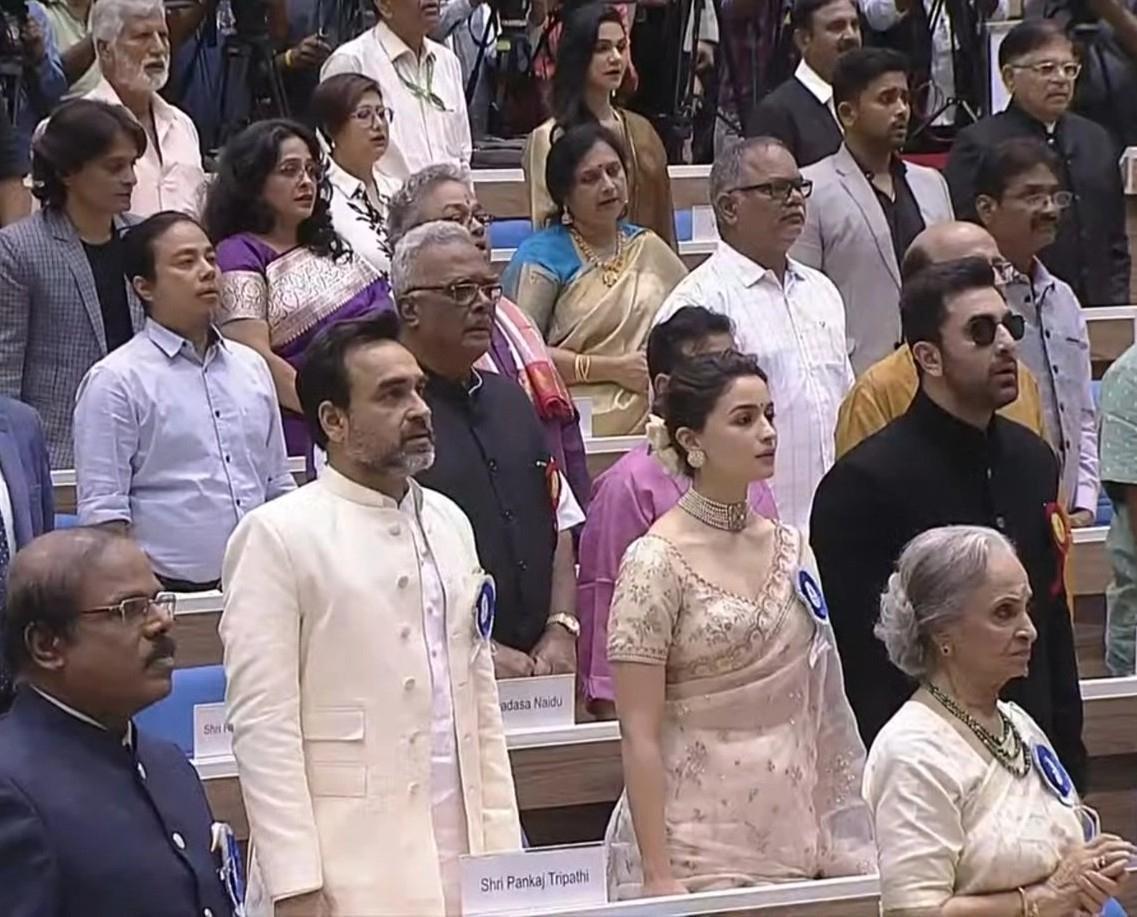 ਇਸ ਪੁਰਸਕਾਰ ਦਾ ਐਲਾਨ 24 ਅਗਸਤ ਨੂੰ ਕੀਤਾ ਗਿਆ ਸੀ। ਜਿਸ ਵਿਚ ਗੰਗੂਬਾਈ ਕਾਠੀਆਵਾੜੀ ਲਈ ਅਦਾਕਾਰਾ ਆਲੀਆ ਭੱਟ ਨੂੰ ਬੈੱਸਟ ਅਦਾਕਾਰਾ ਲਈ ਸਨਮਾਨਿਤ ਕੀਤਾ ਗਿਆ ਸੀ। ਅਜਿਹੇ ‘ਚ ਆਲੀਆ ਭੱਟ ਆਪਣੇ ਪਤੀ ਰਣਬੀਰ ਕਪੂਰ ਨਾਲ ਨੈਸ਼ਨਲ ਐਵਾਰਡ ਲੈਣ ਲਈ ਵਿਗਿਆਨ ਭਵਨ ਪਹੁੰਚੀ। ਅਦਾਕਾਰਾ ਲਈ ਇਹ ਦਿਨ ਬਹੁਤ ਖਾਸ ਹੈ, ਜਿਸ ਕਾਰਨ ਉਸ ਨੇ ਇਸ ਮੌਕੇ ‘ਤੇ ਆਪਣੇ ਵਿਆਹ ਵਾਲੀ ਸਾੜ੍ਹੀ ਪਾਈ ਹੋਈ ਸੀ।