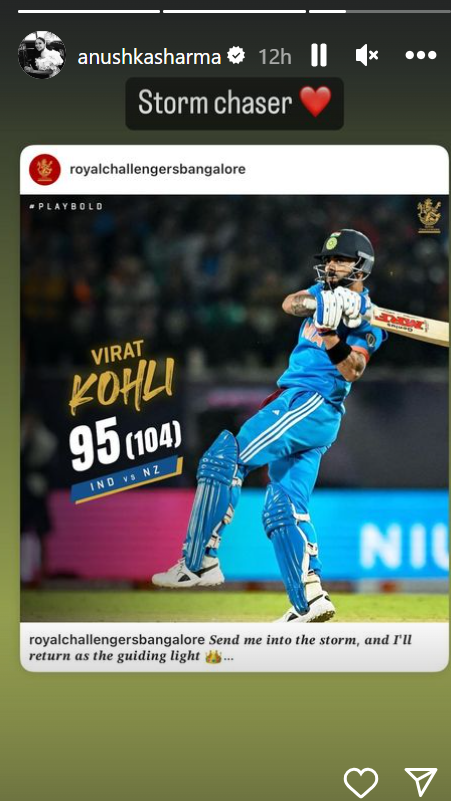 ਇਸ ਦੇ ਨਾਲ ਹੀ ਅਦਾਕਾਰਾ ਨੇ ਦੂਜੀ ਸਟੋਰੀ ‘ਤੇ ਵਿਰਾਟ ਕੋਹਲੀ ਦੀ ਤਾਰੀਫ ਕਰਦਿਆਂ ਉਨ੍ਹਾਂ ਨੂੰ Storm chaser ਕਿਹਾ ਅਤੇ ਉਸ ਦੇ ਨਾਲ ਹੀ ਦਿਲ ਦਾ ਇਮੋਜੀ ਵੀ ਬਣਾਇਆ। ਹੁਣ ਉਸ ਦੀ ਪੋਸਟ ਤੇਜ਼ੀ ਨਾਲ ਵਾਇਰਲ ਹੋ ਰਹੀ ਹੈ।