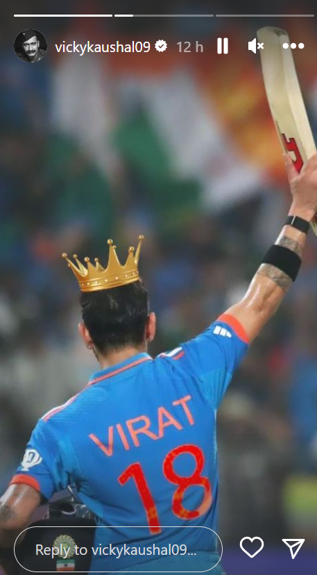 ਇਸ ਤੋਂ ਇਲਾਵਾ ਜਲਦ ‘ਸੈਮ ਬਹਾਦੁਰ’ ‘ਚ ਨਜ਼ਰ ਆਉਣ ਵਾਲੇ ਅਦਾਕਾਰ ਵਿੱਕੀ ਕੌਸ਼ਲ ਨੇ ਵੀ ਇੰਸਟਾਗ੍ਰਾਮ ‘ਤੇ ਮੈਚ ਦੀਆਂ ਦੋ ਤਸਵੀਰਾਂ ਸ਼ੇਅਰ ਕੀਤੀਆਂ ਹਨ। ਇਕ ਵਿੱਚ ਵਿਰਾਟ ਦੀ ਤਸਵੀਰ ਸ਼ੇਅਰ ਕਰਦਿਆਂ ਉਨ੍ਹਾਂ ਨੇ ਖਿਡਾਰੀ ਨੂੰ ਕਿੰਗ ਦਿਖਾਇਆ ਤੇ ਦੂਜੀ ਫੋਟੋ ਵਿਚ ਵਿਰਾਟ ਦੇ ਨਾਲ ਮੁਹੰਮਦ ਸ਼ਮੀ ਵੀ ਨਜ਼ਰ ਆਏ। ਟੀਮ ਇੰਡੀਆ ਦੀ ਤਾਰੀਫ ਕਰਦਿਆਂ ਅਨੁਪਮ ਖੇਰ ਨੇ ਲਿਖਿਆ, ‘ਇਕ ਵਾਰ ਫਿਰ ਭਾਰਤ ਨੇ ਆਪਣੀ ਸ਼ਾਨਦਾਰ ਜਿੱਤ ਦਰਜ ਕੀਤੀ। ਜੈ ਹਿੰਦ ਜੈ ਭਾਰਤ। ਇਸ ਤੋਂ ਇਲਾਵਾ ਰਿਤੇਸ਼ ਦੇਸ਼ਮੁਖ, ਕਰਨ ਵਾਹੀ ਅਤੇ ਆਯੁਸ਼ਮਾਨ ਖੁਰਾਨਾ ਨੇ ਵੀ ਟੀਮ ਦੀ ਤਾਰੀਫ ਕੀਤੀ।
