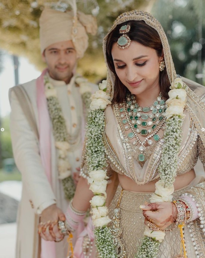 ਨਵੀਂ ਦਿੱਲੀ, ਜੇਐੱਨਐੱਨ : ਪਰਿਣੀਤੀ ਚੋਪੜਾ ਅਤੇ ਰਾਘਵ ਚੱਢਾ ਦੇ ਵਿਆਹ ਦੀਆਂ ਪਹਿਲੀਆਂ ਤਸਵੀਰਾਂ ਸੋਸ਼ਲ ਮੀਡੀਆ ‘ਤੇ ਵਾਇਰਲ ਹੋ ਰਹੀਆਂ ਹਨ। ਸਖ਼ਤ ਸੁਰੱਖਿਆ ਦੇ ਵਿਚਕਾਰ ਜੋੜੇ ਨੇ 24 ਸਤੰਬਰ ਨੂੰ ਉਦੈਪੁਰ ਦੇ ਲੀਲ੍ਹਾ ਪੈਲੇਸ ਵਿਚ ਸ਼ਾਹੀ ਅੰਦਾਜ਼ ਵਿੱਚ ਸੱਤ ਫੇਰੇ ਲਏ। ਵਿਆਹ ਨੂੰ ਲੈ ਕੇ ਲਗਾਤਾਰ ਚਰਚਾ ਬਣੀ ਹੋਈ ਹੈ। ਇਸ ‘ਚ ਅਦਾਕਾਰਾ ਪ੍ਰਿਅੰਕਾ ਚੋਪੜਾ ਦਾ ਵਿਆਹ ‘ਚ ਸ਼ਾਮਿਲ ਨਾ ਹੋਣਾ ਵੀ ਸੁਰਖੀਆਂ ‘ਚ ਹੈ।