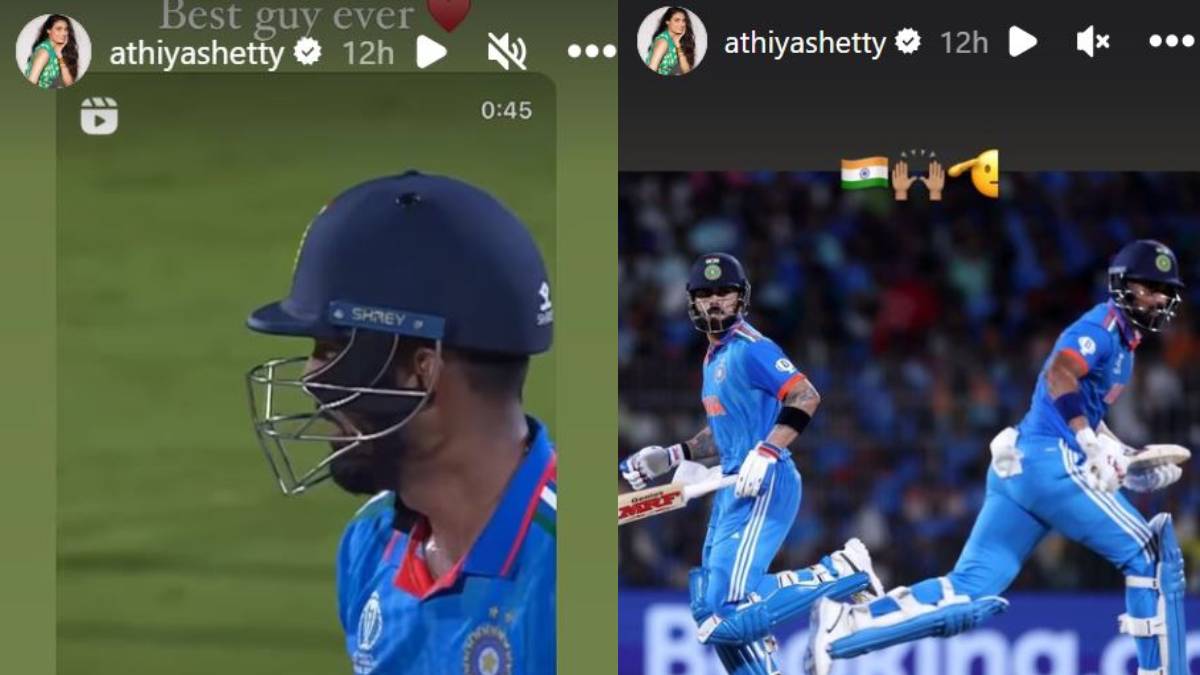 ਕੇਐੱਲ ਰਾਹੁਲ ਨੇ ਵਿਸ਼ਵ ਕੱਪ ‘ਚ ਸ਼ਾਨਦਾਰ ਪਾਰੀ ਖੇਡੀ ਹੈ। 8 ਅਕਤੂਬਰ ਨੂੰ ਹੋਏ ਮੈਚ ‘ਚ ਰਾਹੁਲ ਨੰਬਰ 3 ਨਾਲ ਸੈਂਕੜਾ ਲਗਾਉਣ ਤੋਂ ਰਹਿ ਗਏ। ਉਸ ਨੇ 97 ਦੌੜਾਂ ਬਣਾਈਆਂ। ਬਾਲੀਵੁੱਡ ਅਦਾਕਾਰਾ ਆਥੀਆ ਸ਼ੈੱਟੀ ਨੇ ਆਪਣੇ ਪਤੀ ਰਾਹੁਲ ਦੀ ਤਾਰੀਫ ਕੀਤੀ ਹੈ। ਰਾਹੁਲ ਦੀ ਵੀਡੀਓ ਨੂੰ ਦੁਬਾਰਾ ਸ਼ੇਅਰ ਕਰਦਿਆਂ ਉਸ ਨੇ ਕੈਪਸ਼ਨ ‘ਚ ਲਿਖਿਆ, ‘ਬੈਸਟ ਮੈਨ’। ਉਸ ਨੇ ਰਾਹੁਲ ਅਤੇ ਵਿਰਾਟ ਦੀ ਇਕ ਹੋਰ ਪੋਸਟ ਸ਼ੇਅਰ ਕਰ ਕੇ ਜਿੱਤ ‘ਤੇ ਖੁਸ਼ੀ ਜ਼ਾਹਰ ਕੀਤੀ।