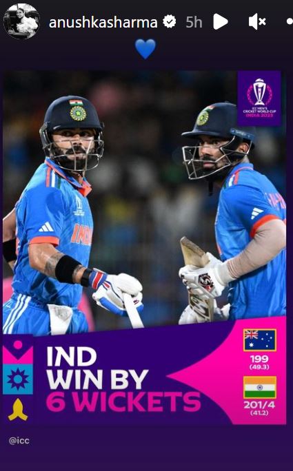 ਅਨੁਸ਼ਕਾ ਸ਼ਰਮਾ ਨੇ ਭਾਰਤ ਦੀ ਜਿੱਤ ‘ਤੇ ਦਿੱਤੀ ਪ੍ਰਤੀਕਿਰਿਆ
